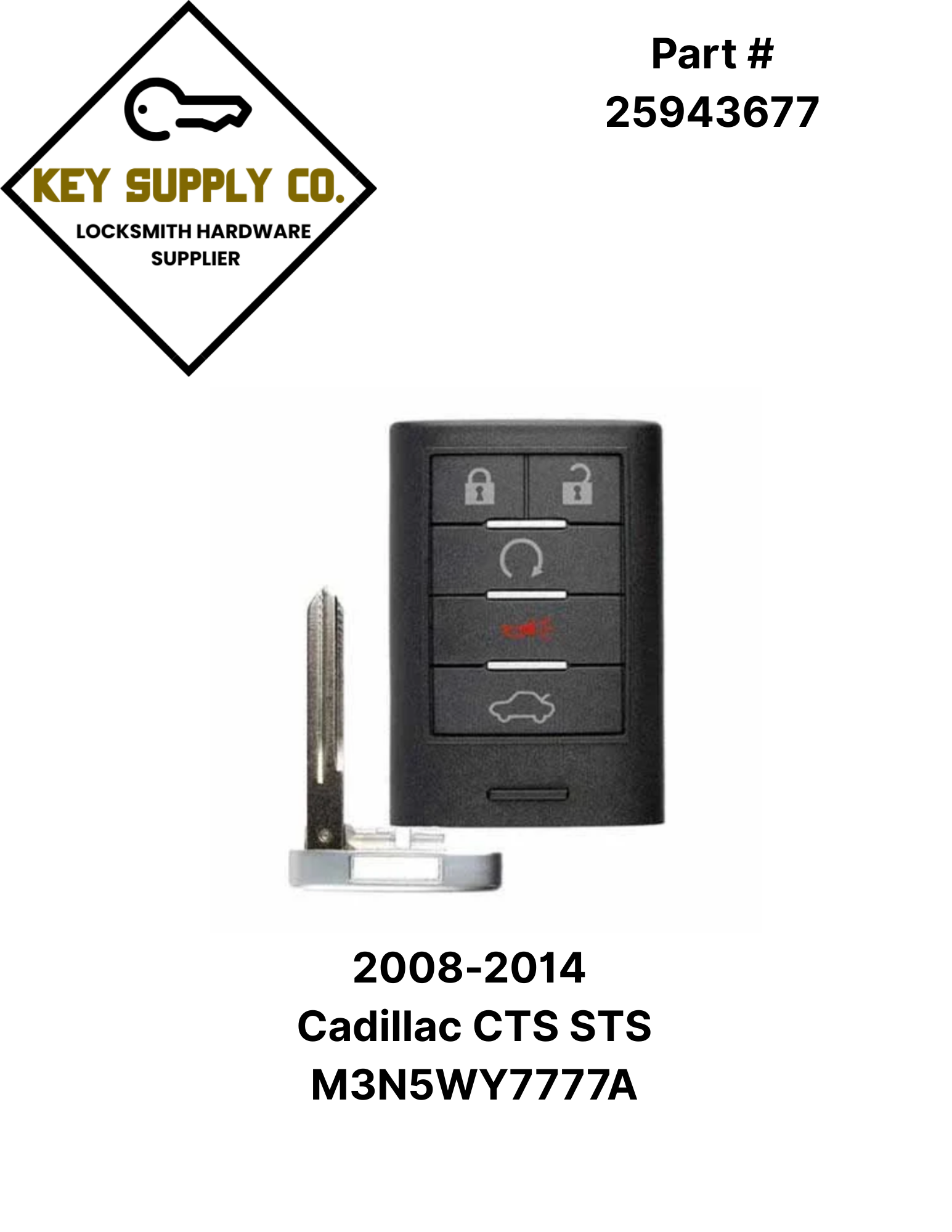2008-2014 Cadillac CTS STS / 5-Button Smart Key / PN: 25943677 / M3N5WY7777A / (AFTERMARKET)
