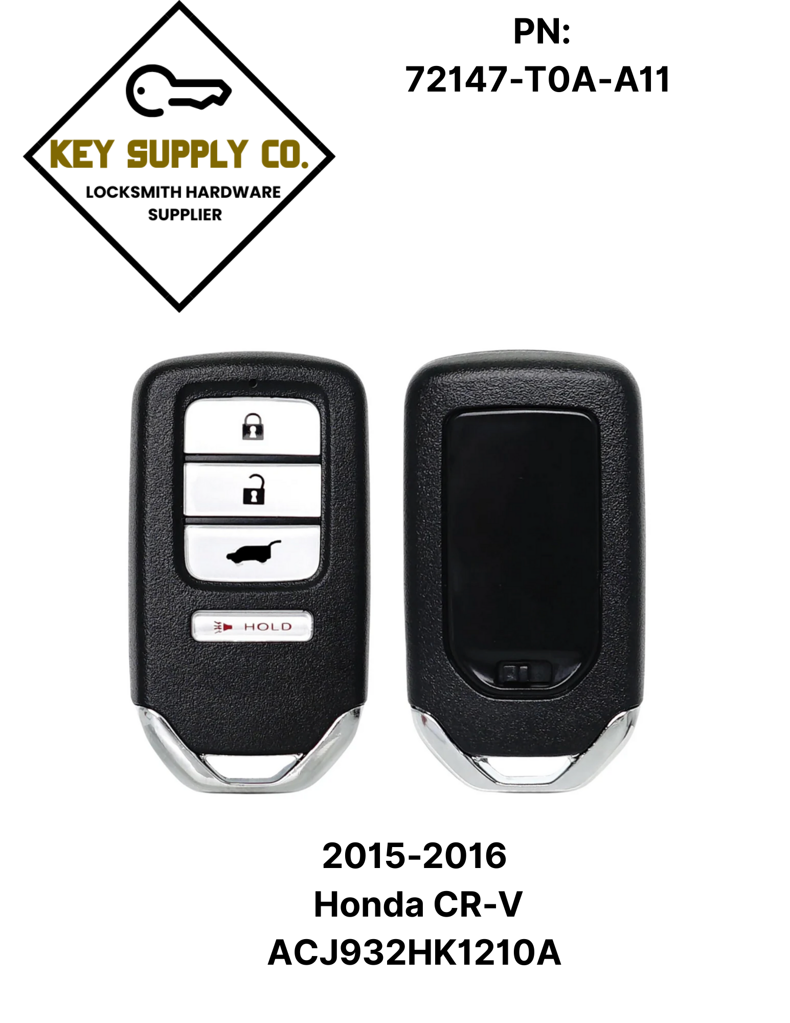 2015-2016 Honda CR-V / 4-Button Smart Key / PN: 72147-T0A-A11 / ACJ932HK1210A (AFTERMARKET)